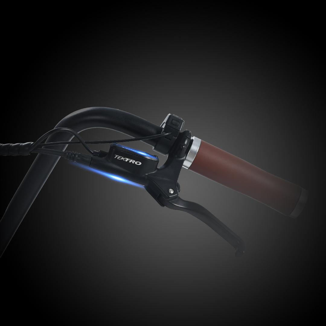 Integrated taillights with brake lights, provides a safer and more enjoyable environment for night riding. The light will highlight to remind the cars and pedestrians behind you when braking.