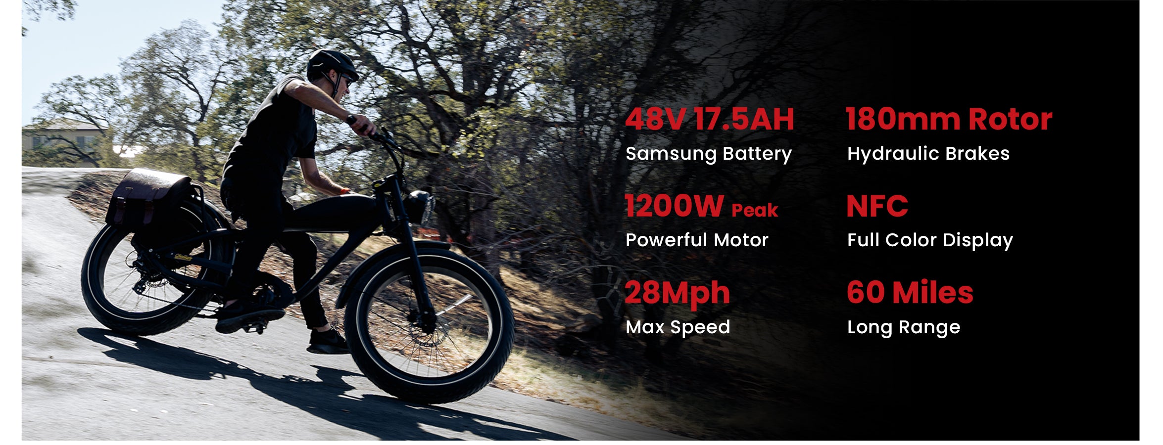 The 750W powerful motor can reach a peak power of 1200W and torque of 95 Nm. Whether you're conquering steep hills or navigating through urban traffic, the motor's torque guarantees a smooth and effortless ride.