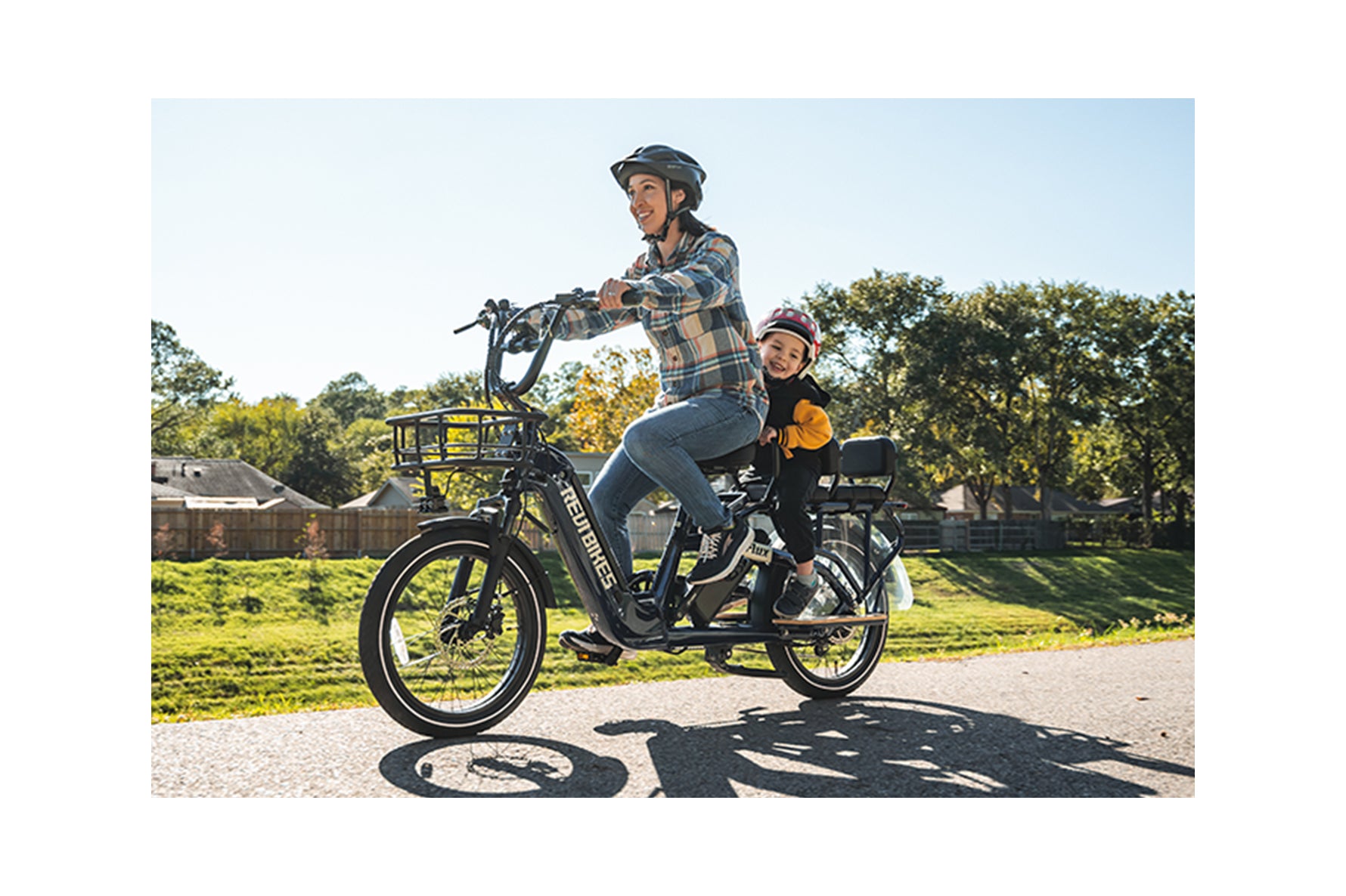 With a total payload capacity of 440 lbs, this electric bicycle can haul it all. The rear rack has a load capacity of 180lbs. Perfect for carrying everything from adventure gear to kids. Comes equipped with rear wheel guards and passenger footboards to enhance passenger safety.